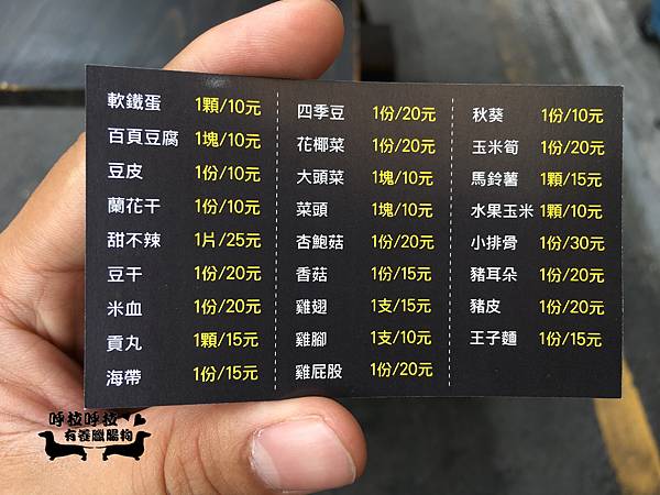 各項滷味價格表