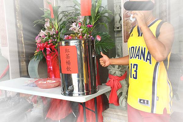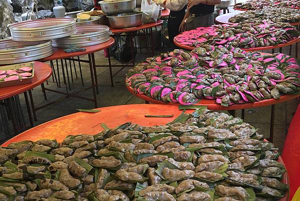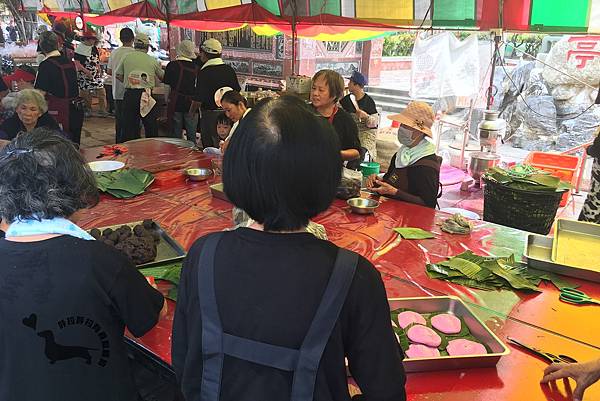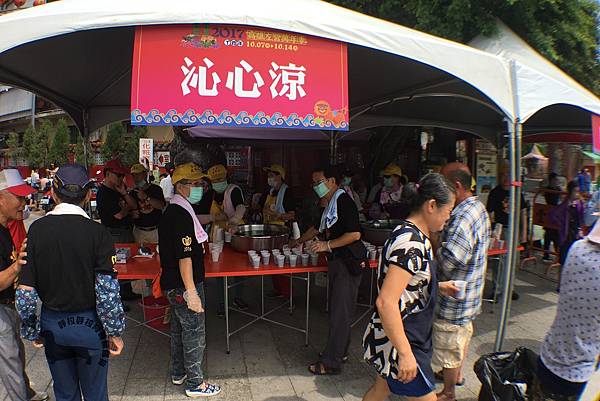 長長人龍在排免費的紅龜粿、圓仔湯、山粉圓等