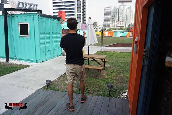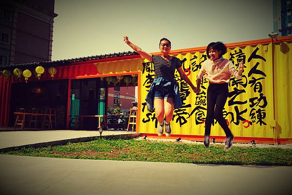 「可以幫我拍個照嗎 ? 我想要利用跳躍,讓這個貨櫃有活潑的感覺。」