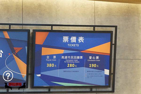 門票:全票380元、高雄市民280元、愛心票190元