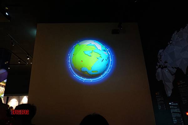 半圓型的立體地球鑲嵌在牆上